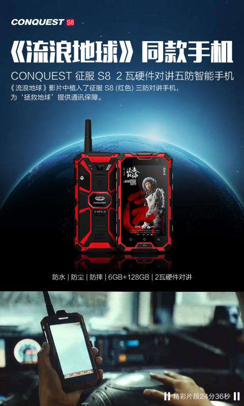 在地球表面已經(jīng)無法讓人類生存的條件下,通訊設(shè)備抗壓能力的重要性顯而易見。CONQUEST征服S8三防手機(jī),就在《流浪地球》的科幻故事中亮相;劉啟帶著朵朵離開地下城,偷拿了姥爺?shù)淖C件來到地面,在重型卡車?yán)镉?/span>CONQUEST征服S8查詢信息,在惡劣的室外條件下實現(xiàn)精準(zhǔn)定位,面對地面上未知的危險與極差的通訊條件,CONQUEST征服S8仍能流暢運(yùn)行,征服一切不平,為劉啟一行人指明前路。