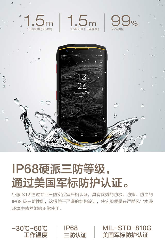 CONQUEST征服 S12工業(yè)防爆手機,不僅具有防爆功能,還擁有出色的防護性能,軍工IP68三防等級,具有防水、防震、防塵功能,有利于在嚴酷環(huán)境下正常使用。本質(zhì)安全型防爆,三防手機+防爆手機=專業(yè)的四防防爆手機。2W DMR數(shù)模一體對講,可滿足特殊環(huán)境下沒有網(wǎng)絡(luò)的情況下對講的需求。支持指紋識別功能,0.2S稍開系統(tǒng)。支持TYPE C充電和數(shù)據(jù)接口,支持GPS+BDS+GLONASS精準雙模定位。