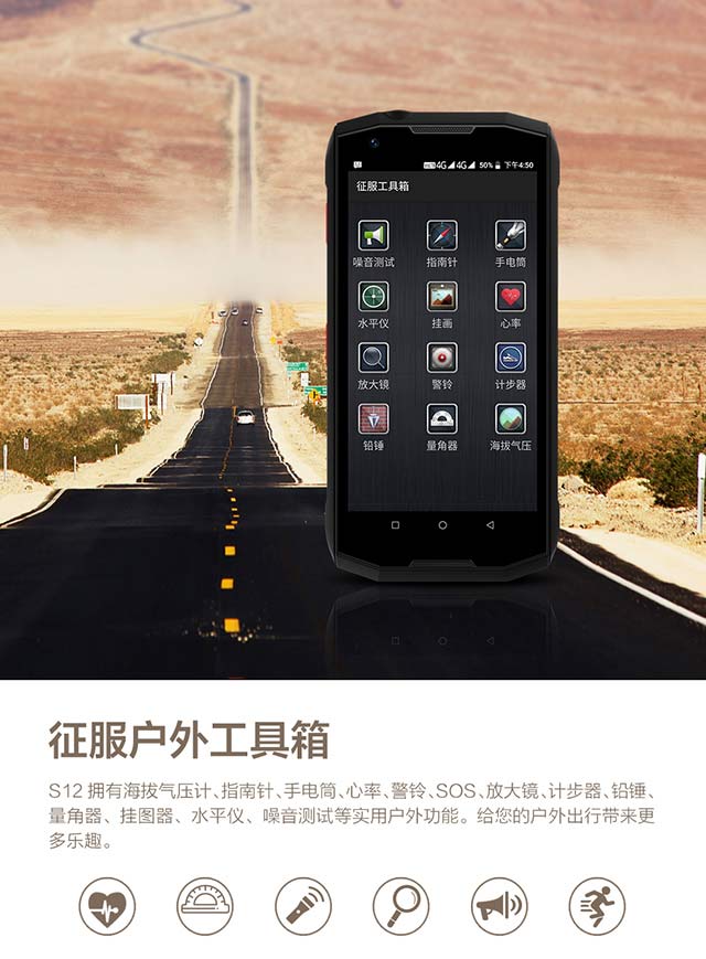 CONQUEST征服工業(yè)防爆手機,是專業(yè)定制工業(yè)防爆手機的廠商,除了給大家更結(jié)實、更安全、更可靠的工業(yè)手機外,還針對產(chǎn)品進行了優(yōu)化,使用S12擁有噪音測試、指南針、水平儀、手電筒、心率、放大鏡、鉛錘、量角器、海拔氣壓等使用功能。支持NFC近場通信技術(shù),無線是做身份證別、數(shù)據(jù)傳輸、NFC巡檢都是可以全面兼容。