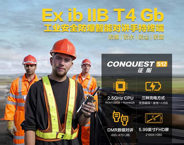 CONQUEST S12擁有較一般對講機(jī)更穩(wěn)定先進(jìn)的安卓8.1系統(tǒng),4G全網(wǎng)通,CPU為8核2.5GHZ,前后攝像頭像素分別為1300萬和2100萬,內(nèi)存為128GB+6GB,能裝載企業(yè)辦公APP、采集和容納視頻、圖片信息。此外,還支持GPS定位,支持NFC、WIFI、條碼掃等功能,便于廠區(qū)職工定位、數(shù)據(jù)讀寫與傳輸。