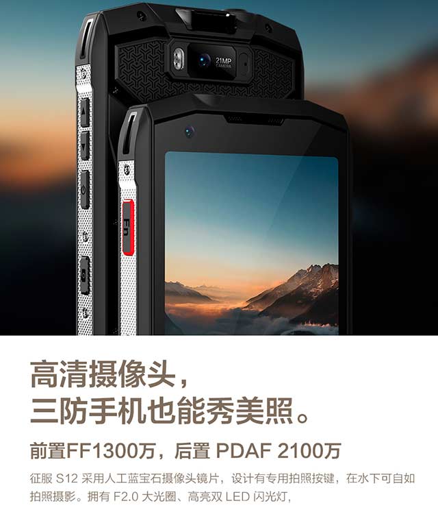 三防手機的攝影功能一直是讓人不敢恭維的。而CONQUEST S12打破了這一魔咒,前置1600萬像素,后置2100萬像素,大光圈f2.0,支持水下拍攝。照片成像色彩自然,還是很不錯的,如果喜歡在旅途中拍攝和記錄的朋友比較合適選擇CONQUEST S12。