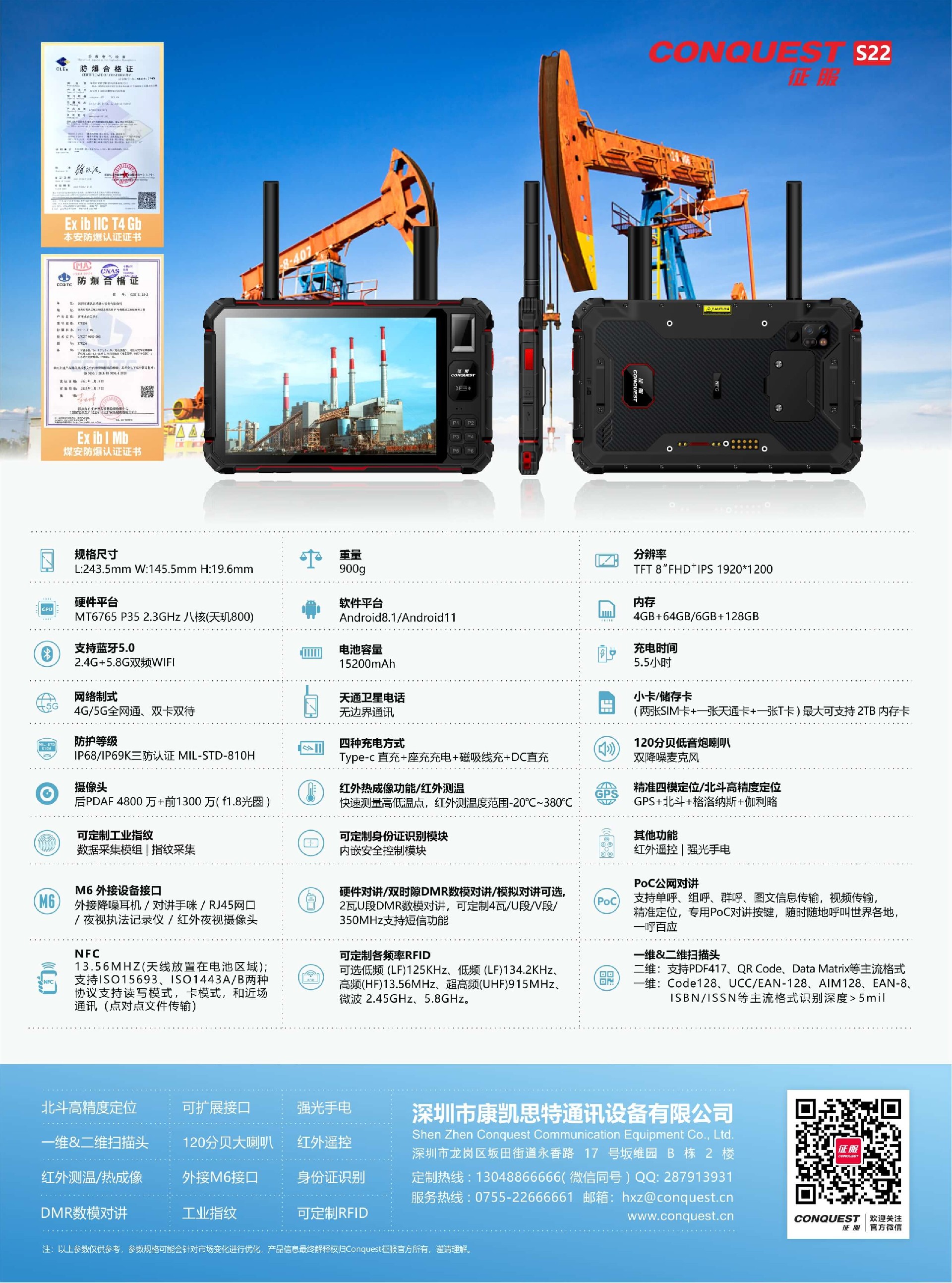 8英寸工業(yè)級(jí)防爆對(duì)講高精度平板CONQUEST征服S22震撼上市!行業(yè)模塊化定制天通衛(wèi)星三防手持PDA終端!