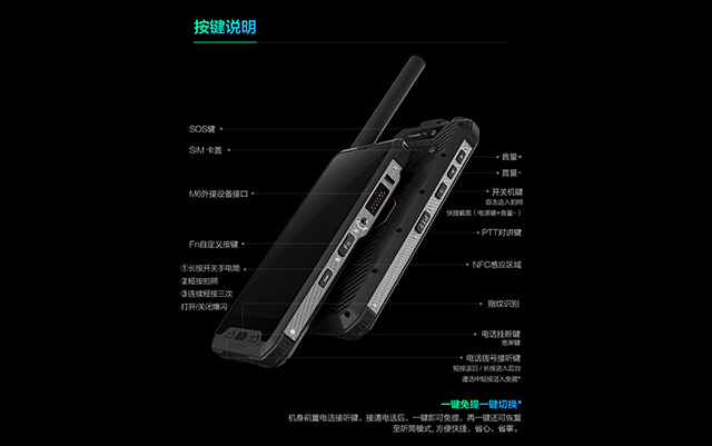 CONQUEST S18擁有三個物理鍵盤,可支持用戶在工作時進(jìn)行手套操作、濕手操作,PTT按鍵可輕松實現(xiàn)一呼百應(yīng),獨(dú)有模式切換按鍵一鍵切換對講/電話模式、支持SOS一鍵呼救。此外,CONQUEST S18延續(xù)了智能終端用戶的使用習(xí)慣,支持觸屏操控使用,滿足用戶的不同使用場景和體驗需求。