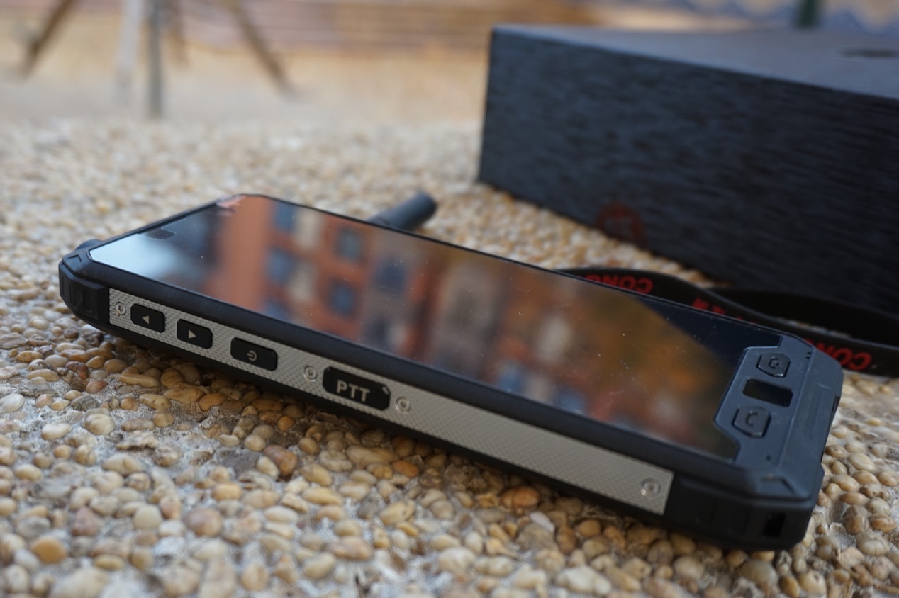 機(jī)身左側(cè),設(shè)有電源鍵和音量加減鍵,以及戶外常用的PTT按鍵。