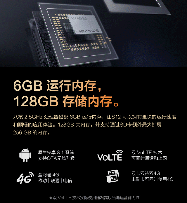 征服(CONQUEST)S12內(nèi)置MTK6763 2.5GHz八核(Eight-Core)P23 處理器和 Android 8.1.0系統(tǒng),輕快高速,再加上4+64G,6+128G的超大內(nèi)存,屏幕采用5.99英寸FHD高清顯示屏,比例為 18∶9分辨率為 2160 × 1080,無論游戲、追劇還是日常使用都可暢快淋漓。 征服(CONQUEST)S12后置2100萬的攝像頭和后置指紋豎排放置放在手機(jī)中軸線上,輕松拍出更加清晰美好的場景。