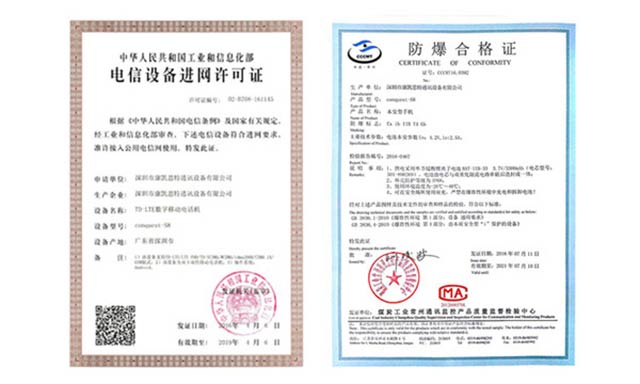 征服 S8 本質(zhì)型安全防爆手機(jī)通過了國家專業(yè)的CTA入網(wǎng)檢測,中華為民共和國工業(yè)和信息化部的電信設(shè)備進(jìn)網(wǎng)許可證、國家級防爆合格證、CCC國家3C強(qiáng)制性檢測認(rèn)證等;權(quán)威瑞士SGS認(rèn)證IP68證書! 征服 S8 防爆手機(jī)三證齊全!