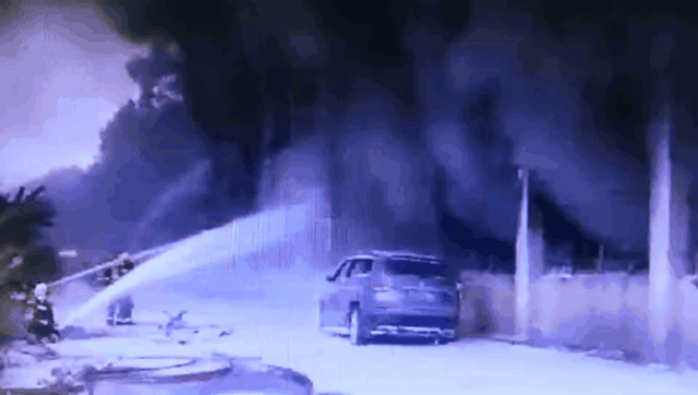 視頻中,現(xiàn)場火光沖天,濃煙滾滾,不時有爆炸聲響傳出,引發(fā)周邊圍觀群眾陣陣驚呼。