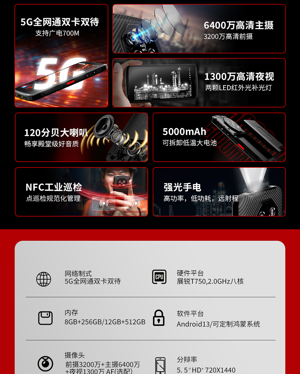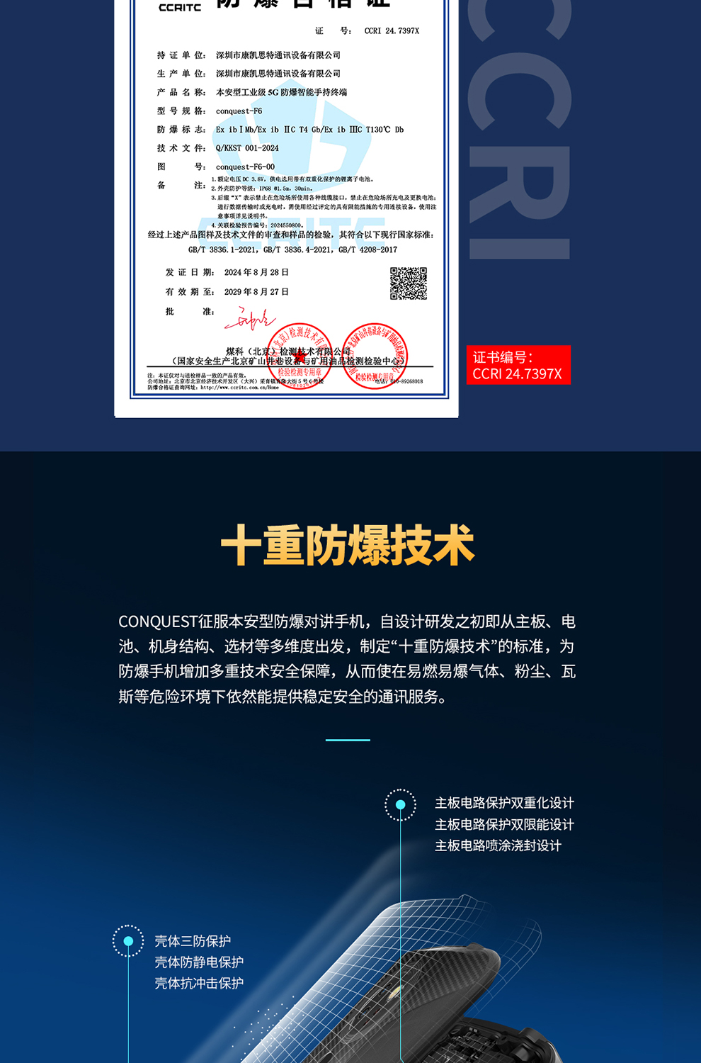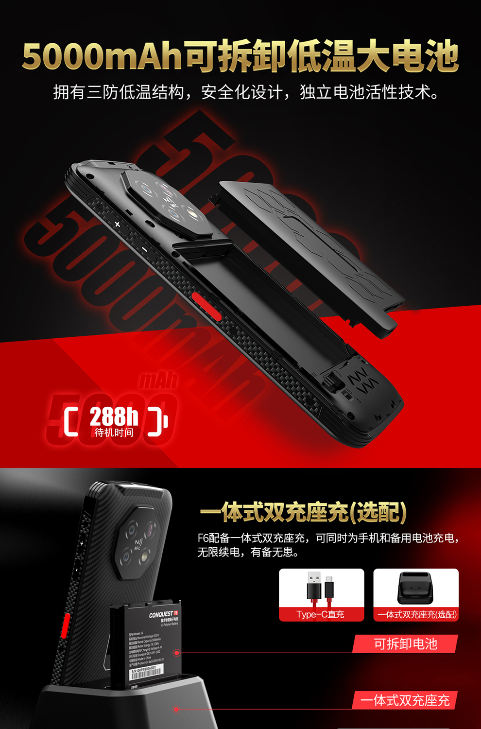 CONQUEST征服F6 輕薄型5G國產(chǎn)芯單北斗定位防爆智能手機(jī)!可定制麒麟/鴻蒙系統(tǒng)