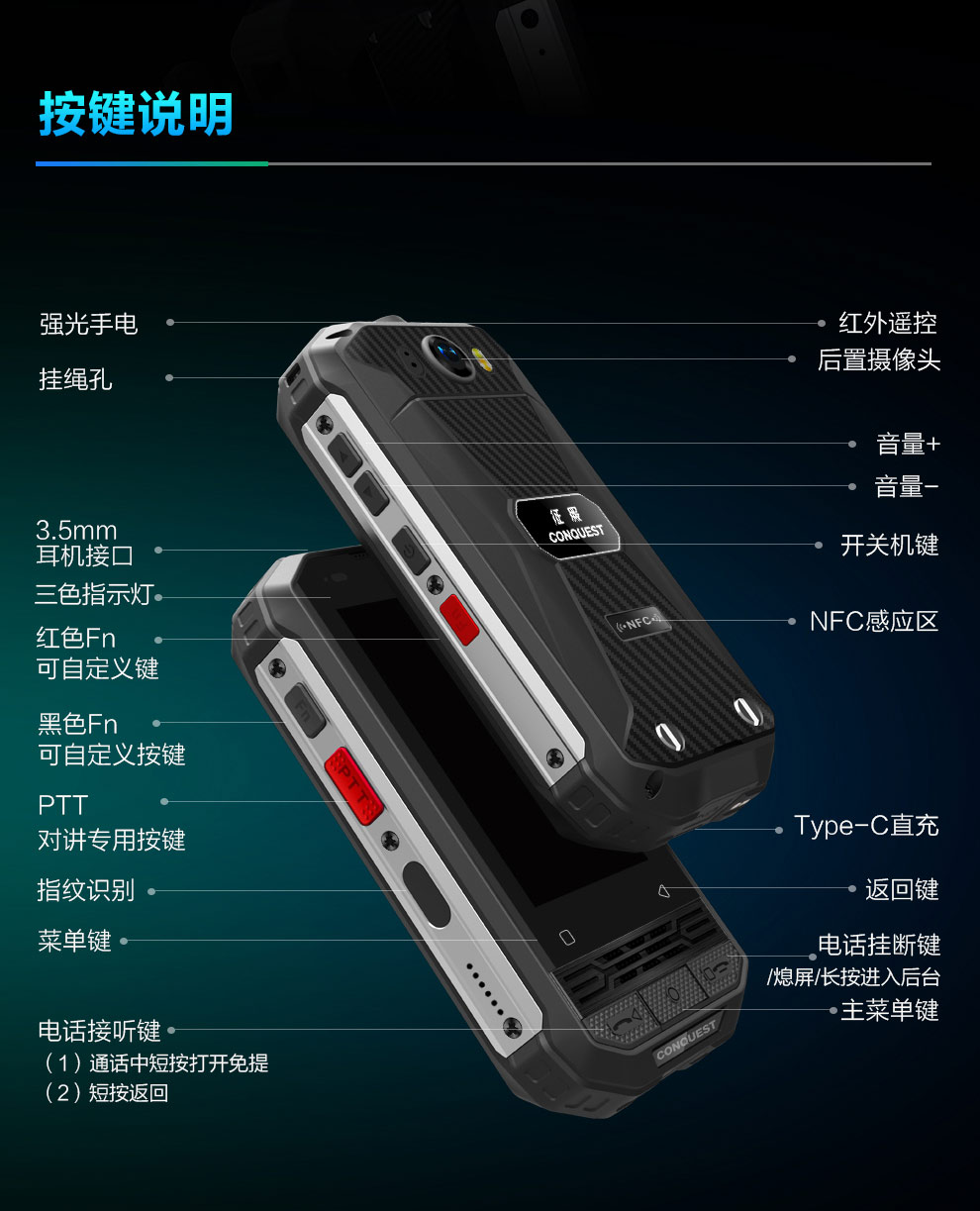 CONQUEST 征服F2 EX防爆手機(jī)化工廠二類(lèi)本質(zhì)安全型工業(yè)級(jí)對(duì)講智能三防石油燃?xì)夤艿乐扑?帶發(fā)票和防爆證 3G+32G
