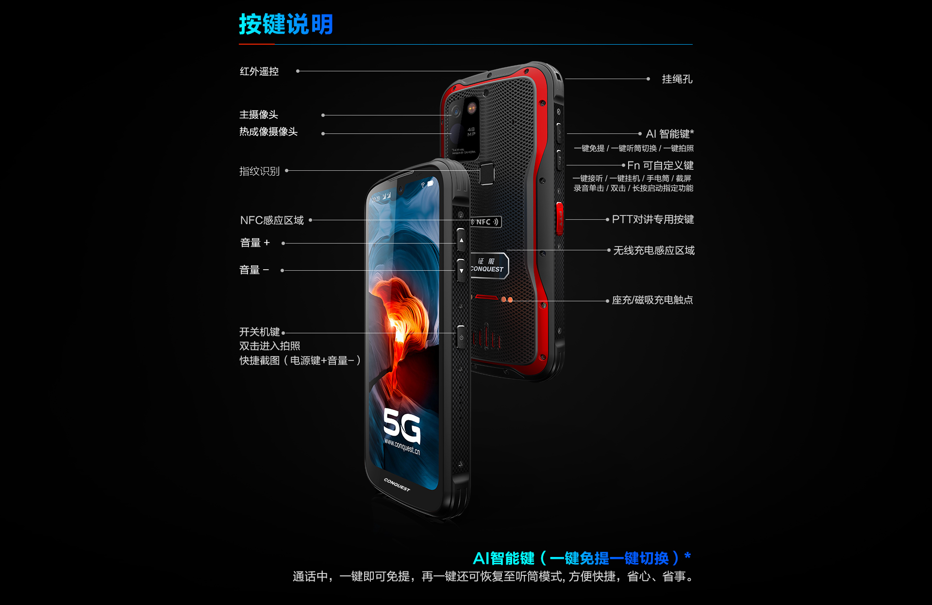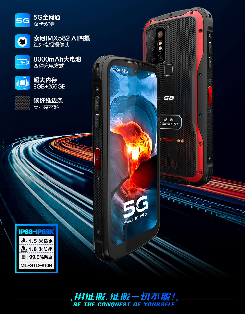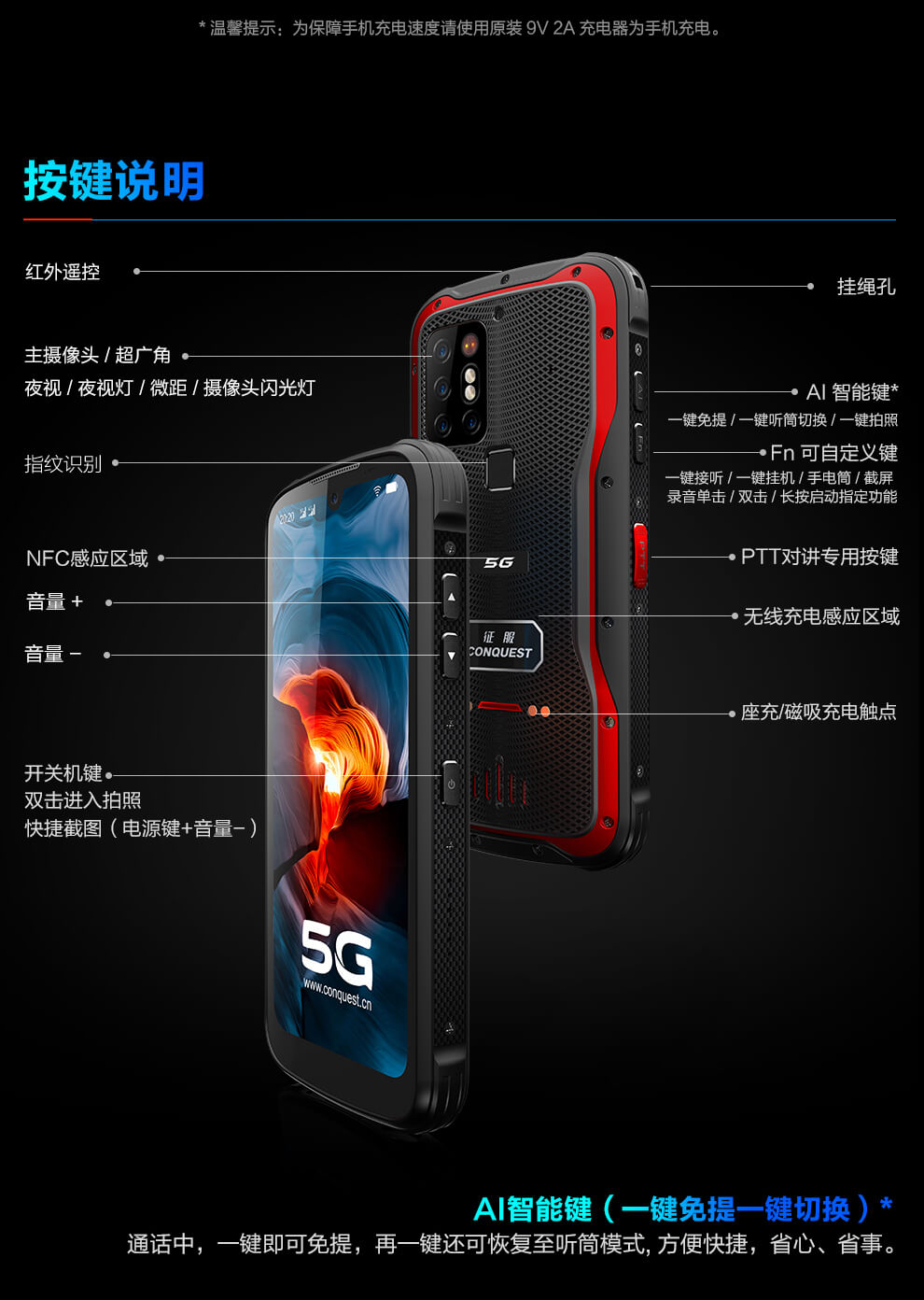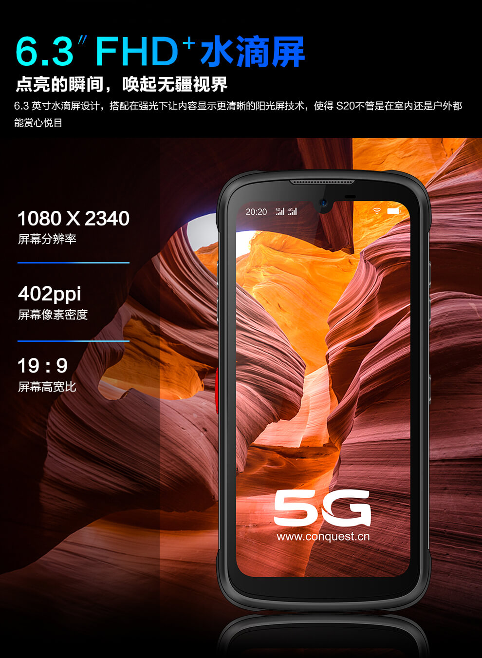 CONQUEST 征服S20 5G防爆手機(jī)EX化工廠石油天然氣燃?xì)庵扑幹悄苋廊W(wǎng)通工業(yè)手持巡檢終端 5G電力巡檢終端 8G+128G