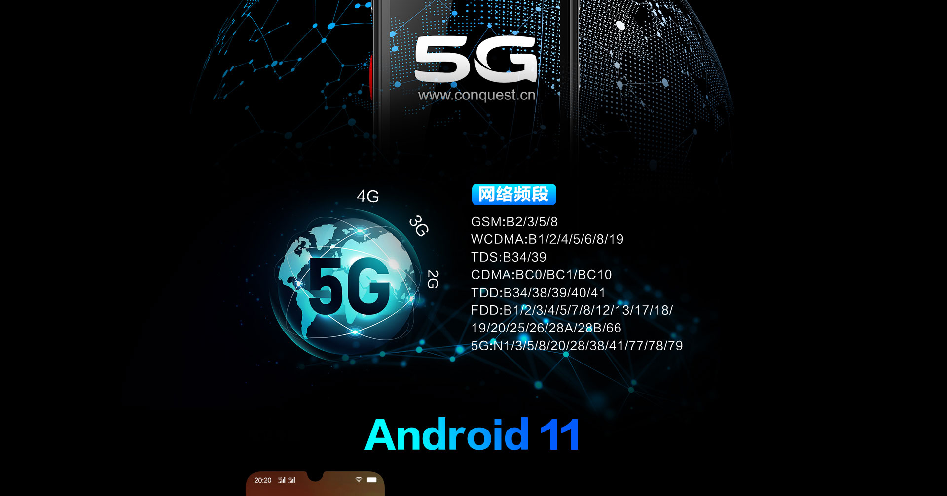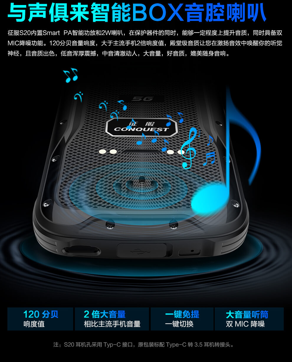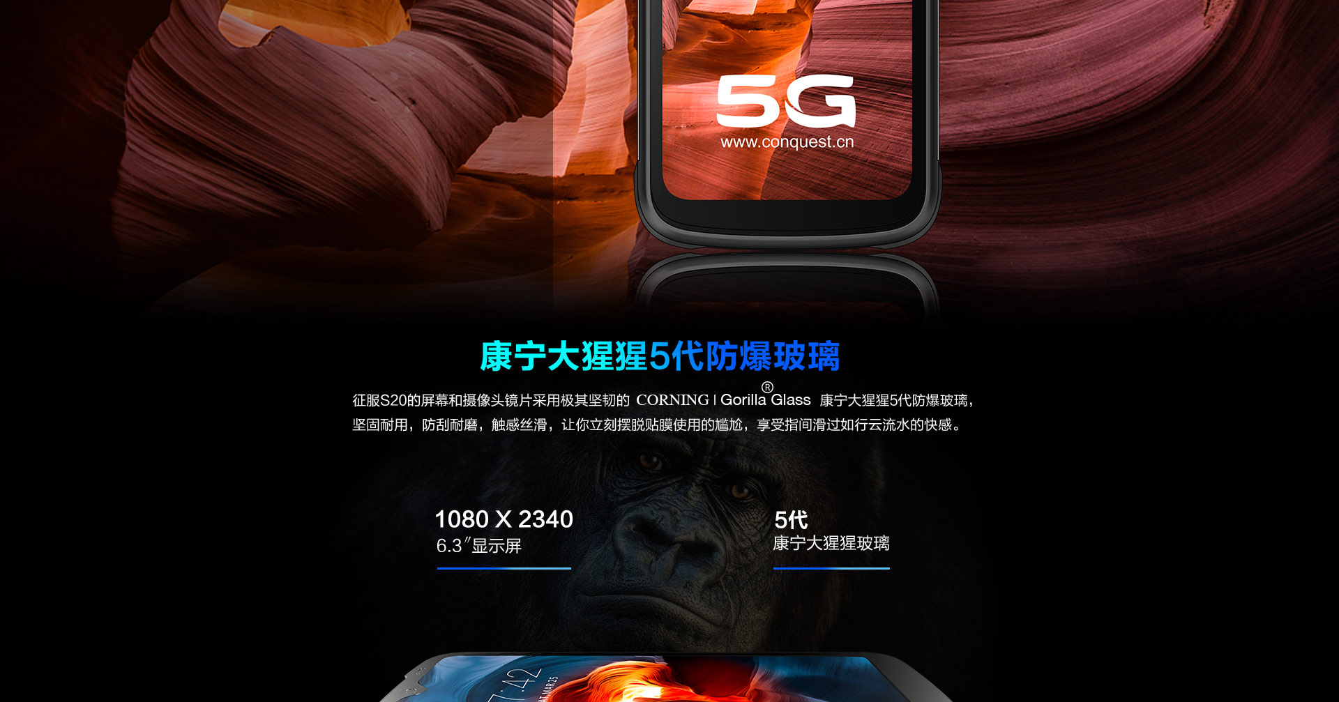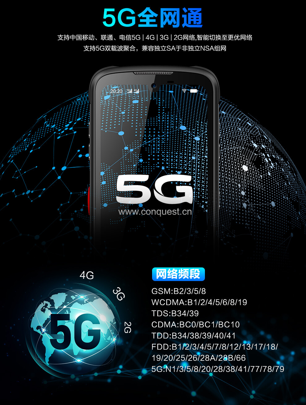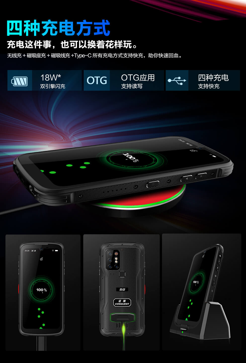 CONQUEST 征服S20 5G防爆手機(jī)EX化工廠石油天然氣燃?xì)庵扑幹悄苋廊W(wǎng)通工業(yè)手持巡檢終端 5G電力巡檢終端 8G+128G