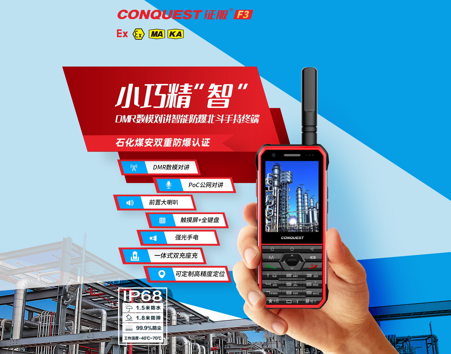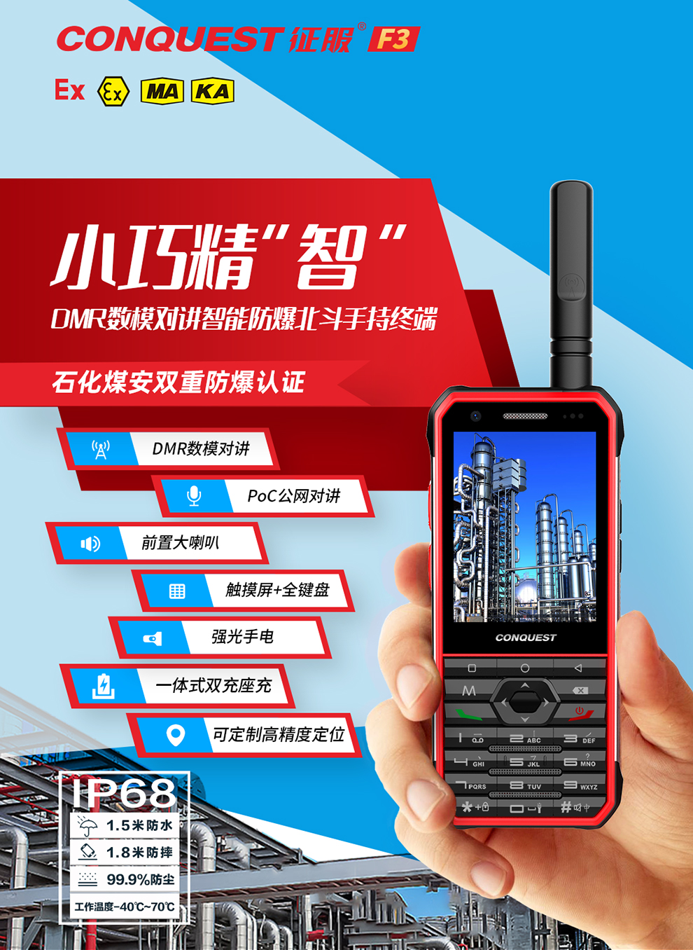CONQUEST征服 F3 全鍵盤DMR數(shù)模對講智能雙防爆認證終端