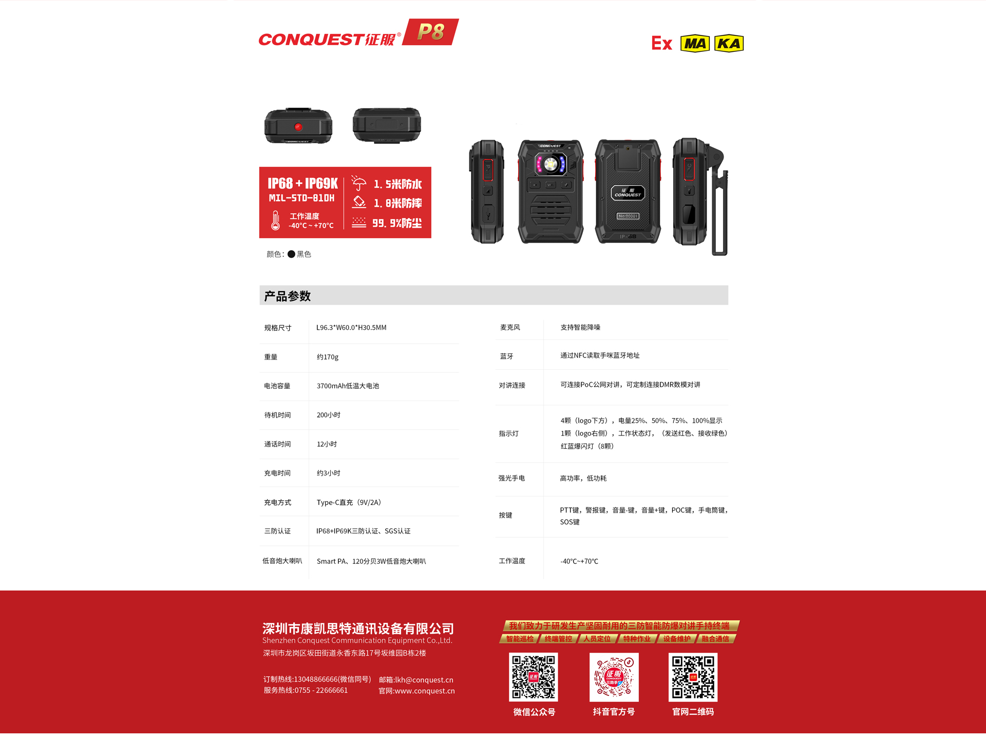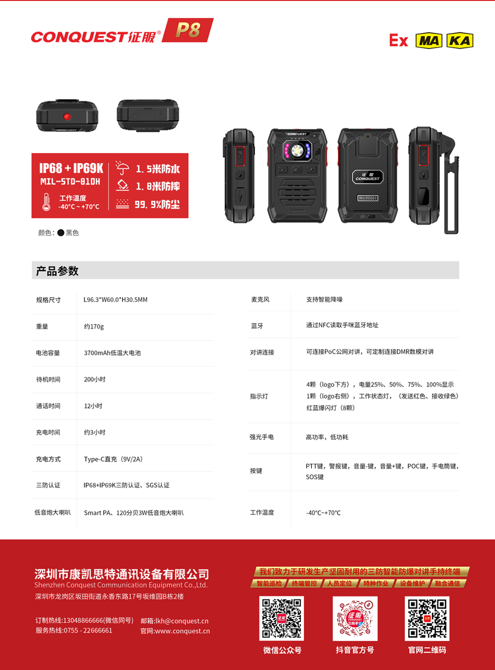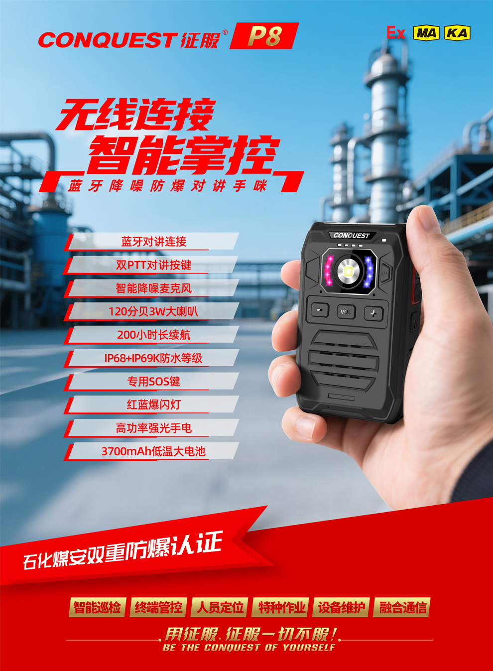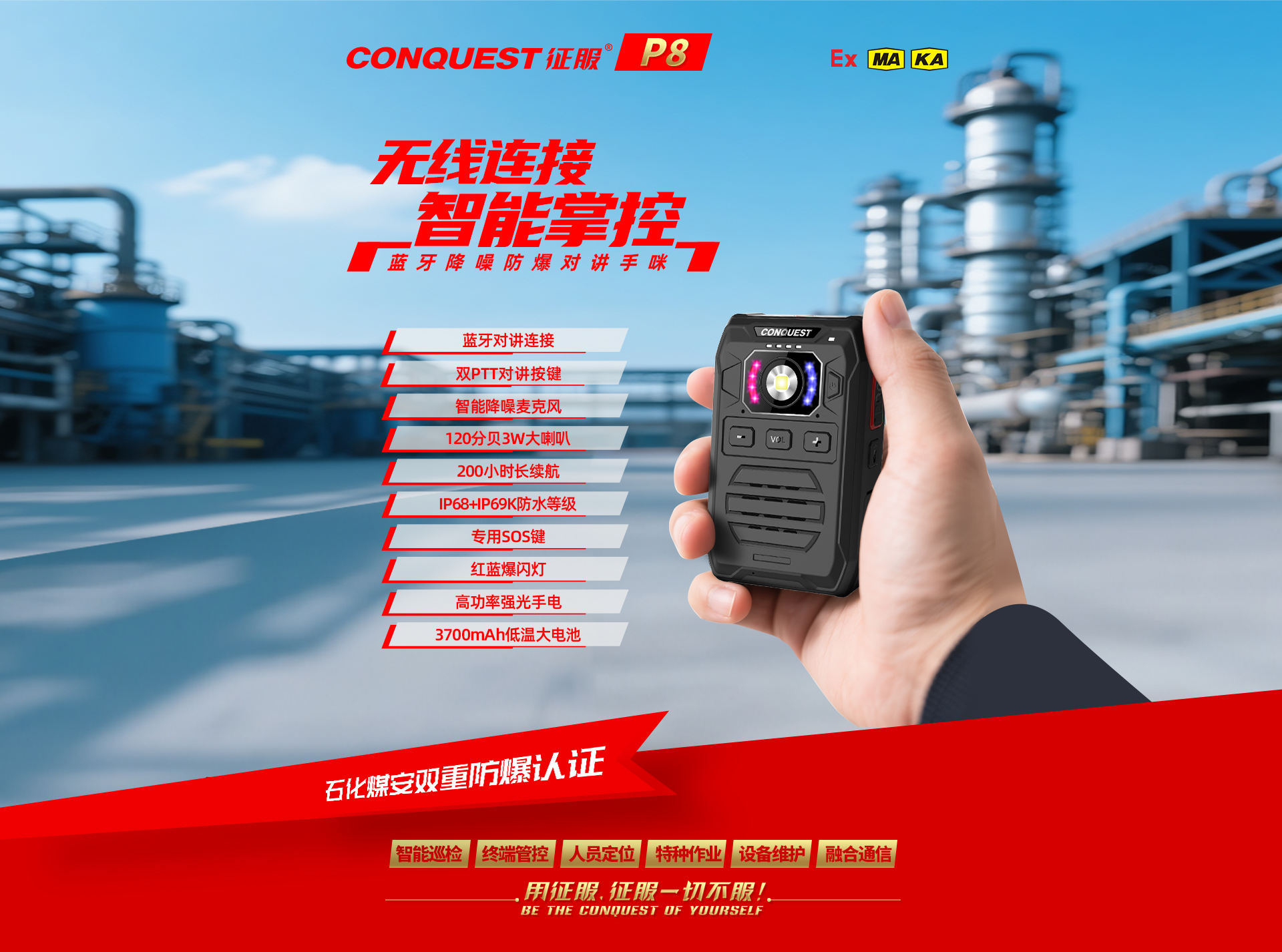 CONQUEST征服P8無(wú)線藍(lán)牙降噪防爆對(duì)講手咪!源頭廠家