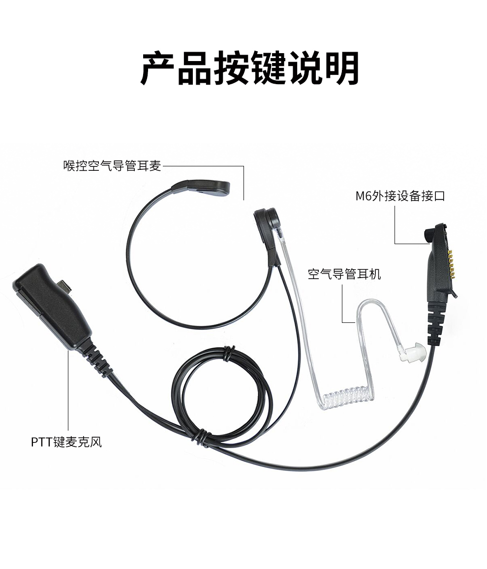 CONQUEST征服 對講機喉震喉麥耳機喉控空氣導管耳麥M6接口防輻射喉麥彈簧耳機 吼振耳機