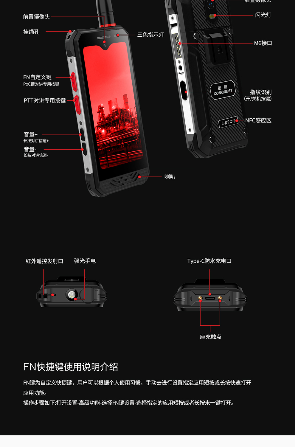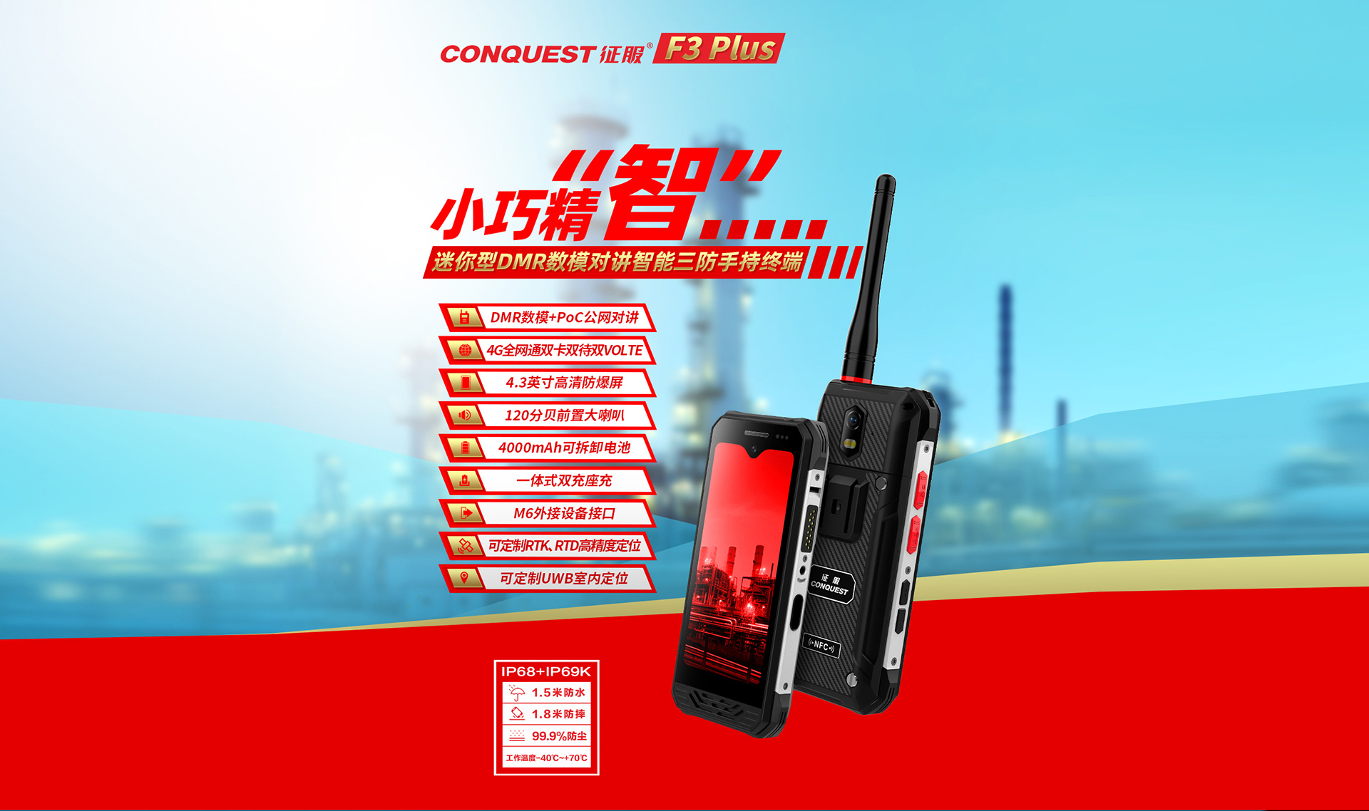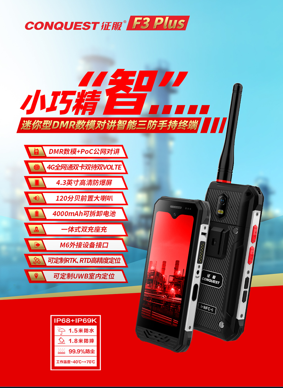 CONQUEST征服迷你款F3 Plus三防手持終端 ,三防對講手機(jī),可定制uwb室內(nèi)高精度定位