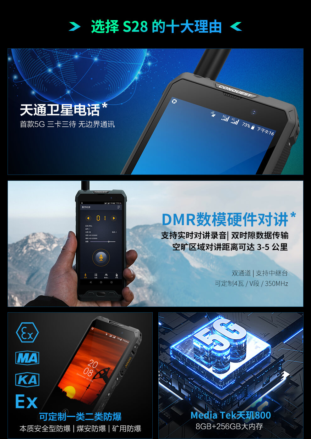 CONQUEST征服S28 5G 三防DMR數(shù)模對講智能戶外防水手機(jī)4800萬像素
