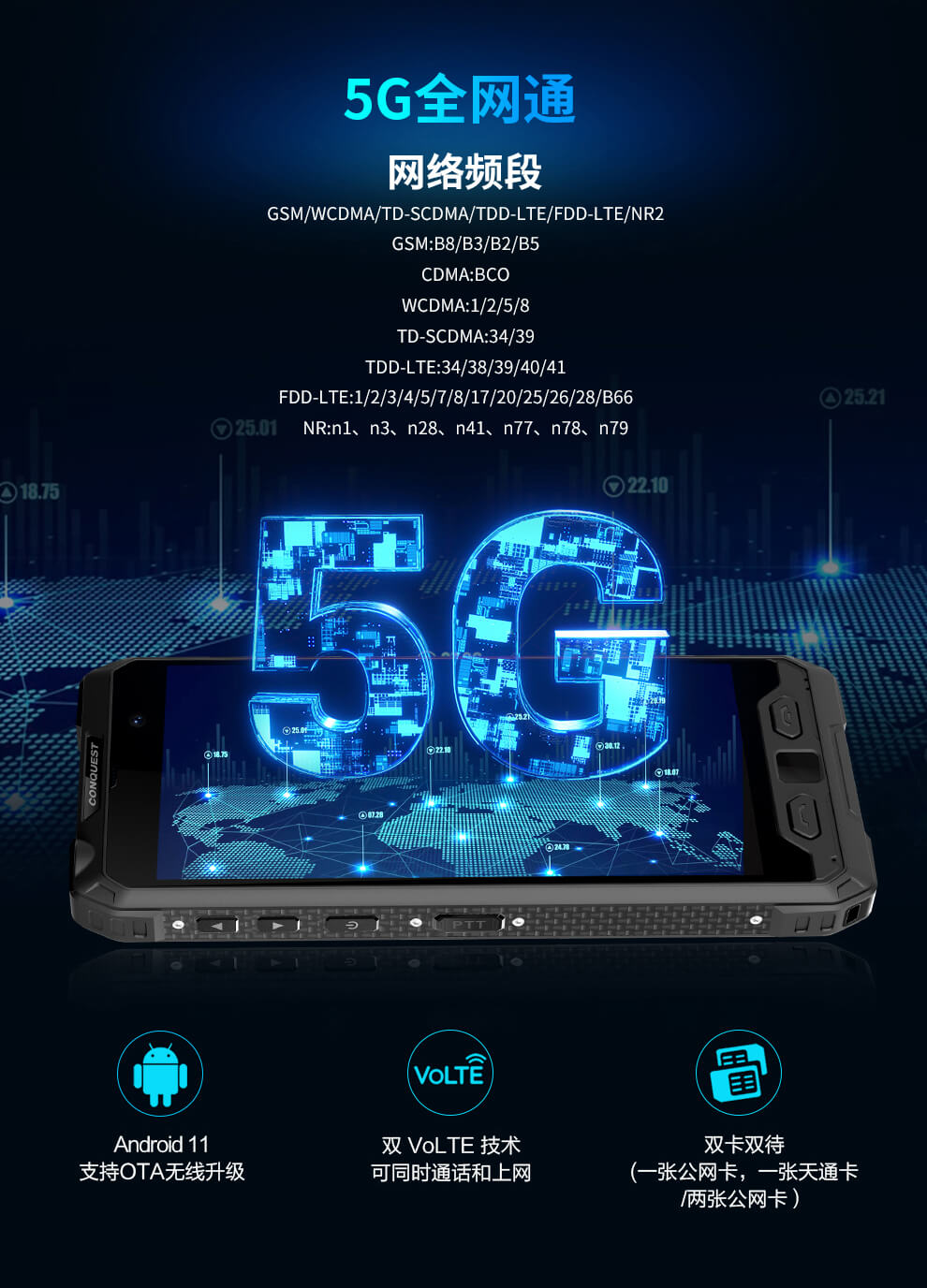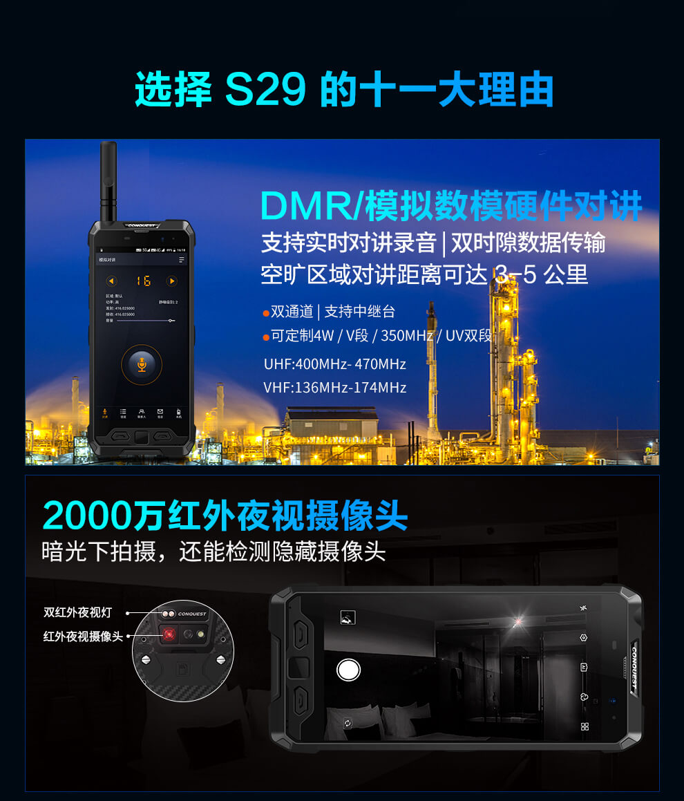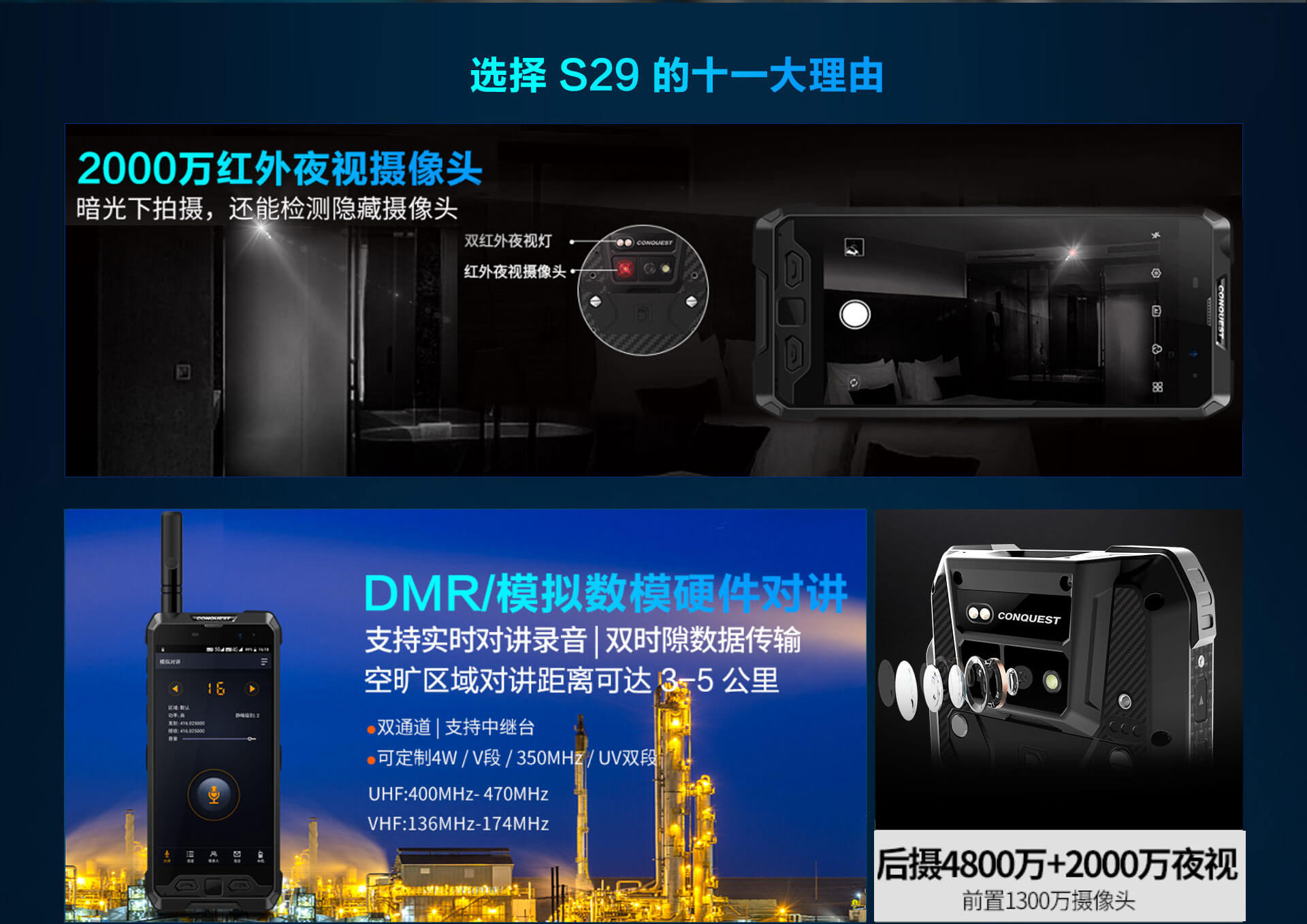 CONQUEST征服S29 5G三防手機(jī)DMR數(shù)模對(duì)講紅外熱成像廣電700M智能對(duì)講終端
